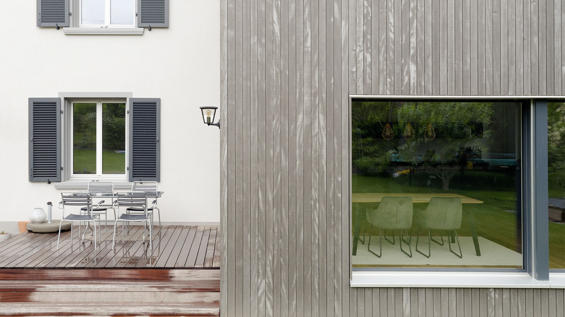 Zweigeschossiger Anbau mit Terrassendeck zur Wohnraumerweiterung. Geplant von der Brunner Planungen GmbH, ausgeführt von der Brunner Zimmerei Holzbau GmbH.