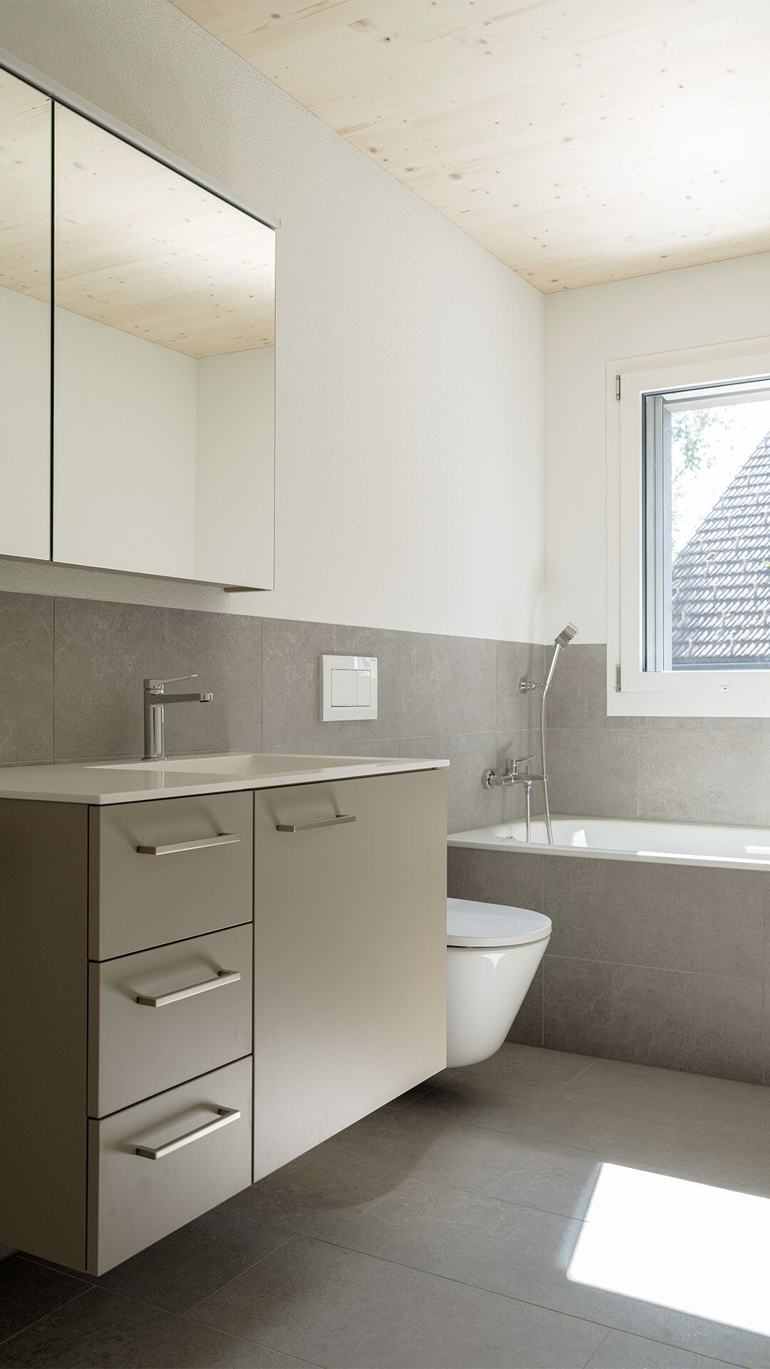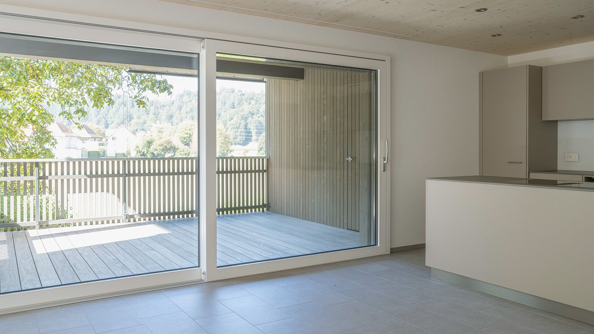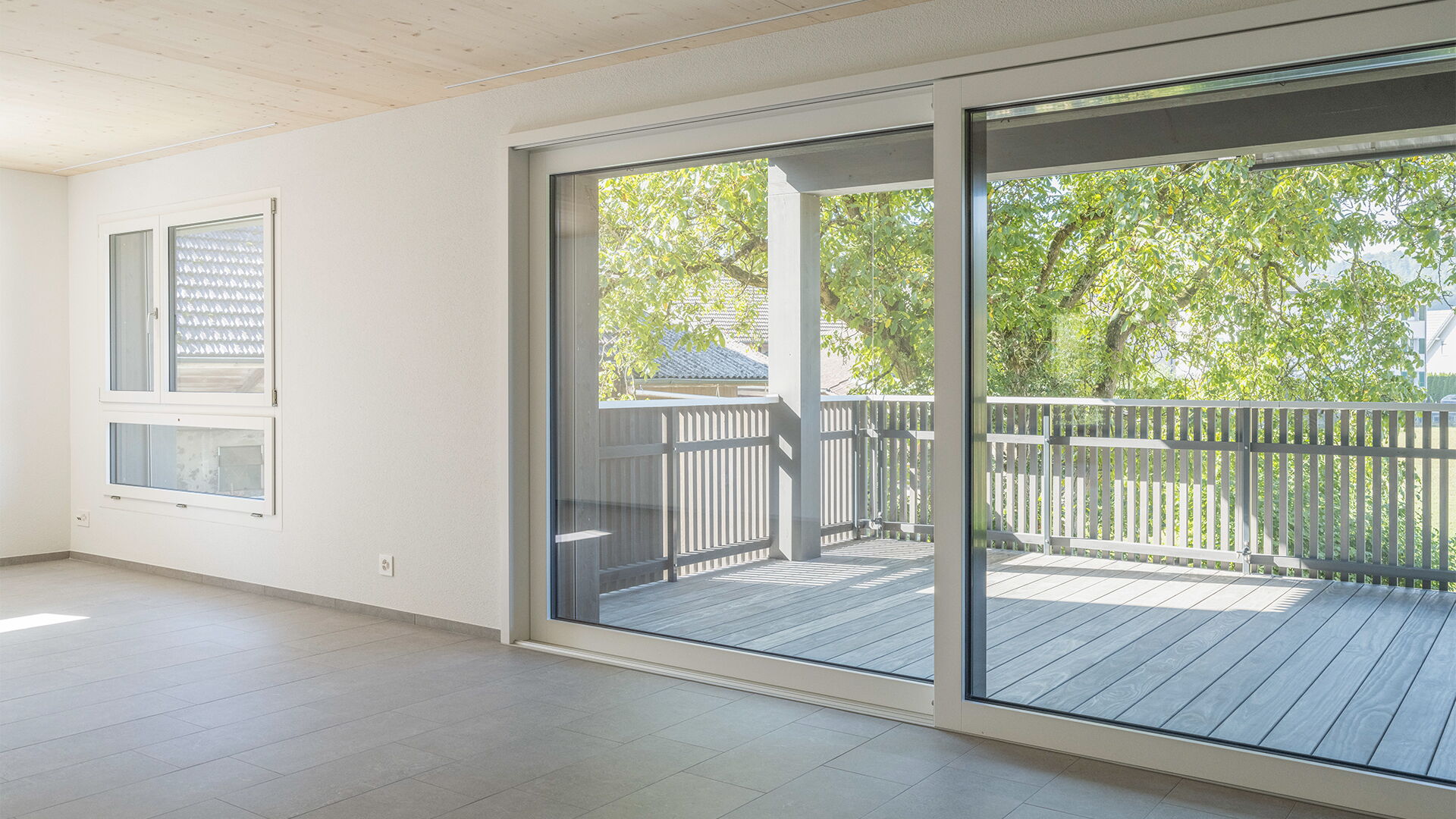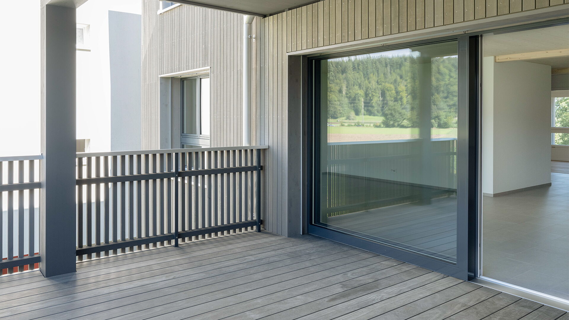Neubau Mehrfamilienhaus in Holzbauweise mit vertikaler Fassadenschalung. Montage von Terrassendecks, Reduits und Balkongeländer. Projektierung durch die Strebel Kiener Architekten und Planer FH. Ausführungsplanung und Bauleitung durch die Brunner Planungen GmbH, ausgeführt von der Brunner Zimmerei Holzbau GmbH.